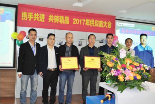 通过品质部部长对品质数据的分析总结中评比出3名优秀供应商,同时邀请总经理及部门领导为优秀供应商颁奖。